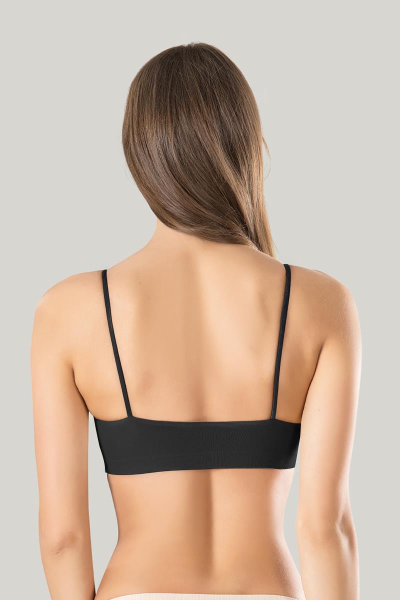 İnce Askılı Siyah Büstiyer, zarif görünüm ve maksimum konforu bir araya getirir. Dikişsiz yapısı ile kıyafetlerin altında iz yapmaz; esnek kumaşı vücuda tam oturur.